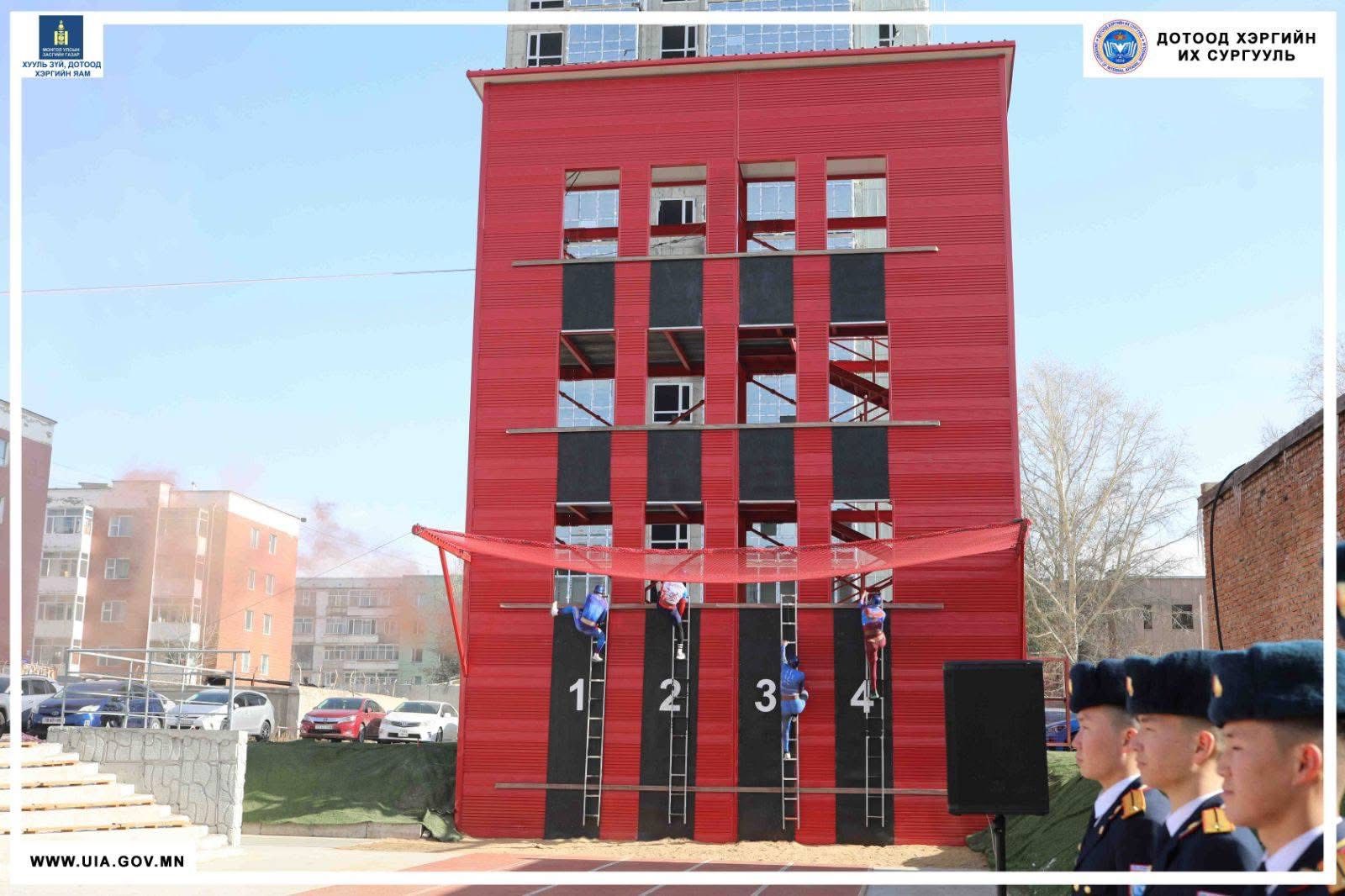 ДХИС-ийн Онцгой байдлын сургуулийн сургалтын үйл ажиллагааг олон улсын жишигт нийцүүлэх, сонсогч, суралцагчдын бие бялдар, албаны бэлтгэл, бэлэн байдлыг дээшлүүлэх, тэсвэр тэвчээр, авхаалж самбааг нэмэгдүүлэх, гал унтраах техник спортын баг тамирчдын ур чадварыг мэргэжлийн түвшинд бэлтгэх, сургалт, дадлагын таатай орчин бүрдүүлэх зорилгоор Онцгой байдлын ерөнхий газрын санхүүжилтээр “Гал унтраах техник спортын сургалтын цамхаг”-ийг барьж, өнөөдөр их сургуульд хүлээлгэн өглөө.